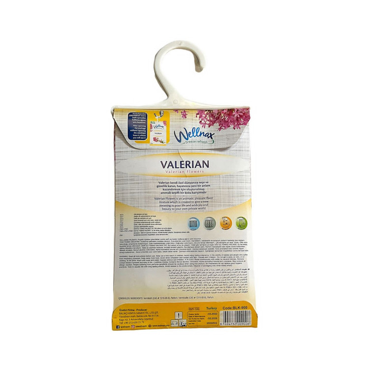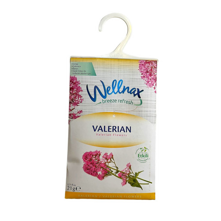 خوشبو کننده ها و ضد بید کمد و لباس مدل VALERIAN FLOWERS از جمله محصولات کاربردی و پرطرفدار برند ترکیه ای Wellnax هستند که از جمله تولید کنندگان معتبر مواد و لوازم شوینده و بهداشتی می باشد. این خوشبو کننده ها در بسته های 21 گرمی عرضه شده و دارای رایحه های متنوع و نسبتا قوی می باشد که می تواند برای خوشبو نگاه داشتن کمد و کشوهای حاوی لباس، رخت خواب و حتی سرویس بهداشتی و محل کار و زندگی استفاده شود. این محصول به شکل پاکتی درون یک لفاف سلفونی به دست شما می رسد. برای استفاده کافیست تا پاکت را از سلفون خارج کرده و در محل مورد نظر قرار دهید. برای راحتی یک گیره آویز نیز روی این پاکت قرار دارد که به شما امکان آویزان کردن آن را روی میله کمد یا سطوح دلخواه دیگر می دهد. به یاد داشته باشید که افراد داری آسم و سایر بیماری ها تنفسی نباید در معرض این خوشبو کننده قرار بگیرند و محتویات این خوشبو کننده مناسب تماس با پوست نمی باشند و می بایست از دسترس کودکان دور نگاه داشته شوند.